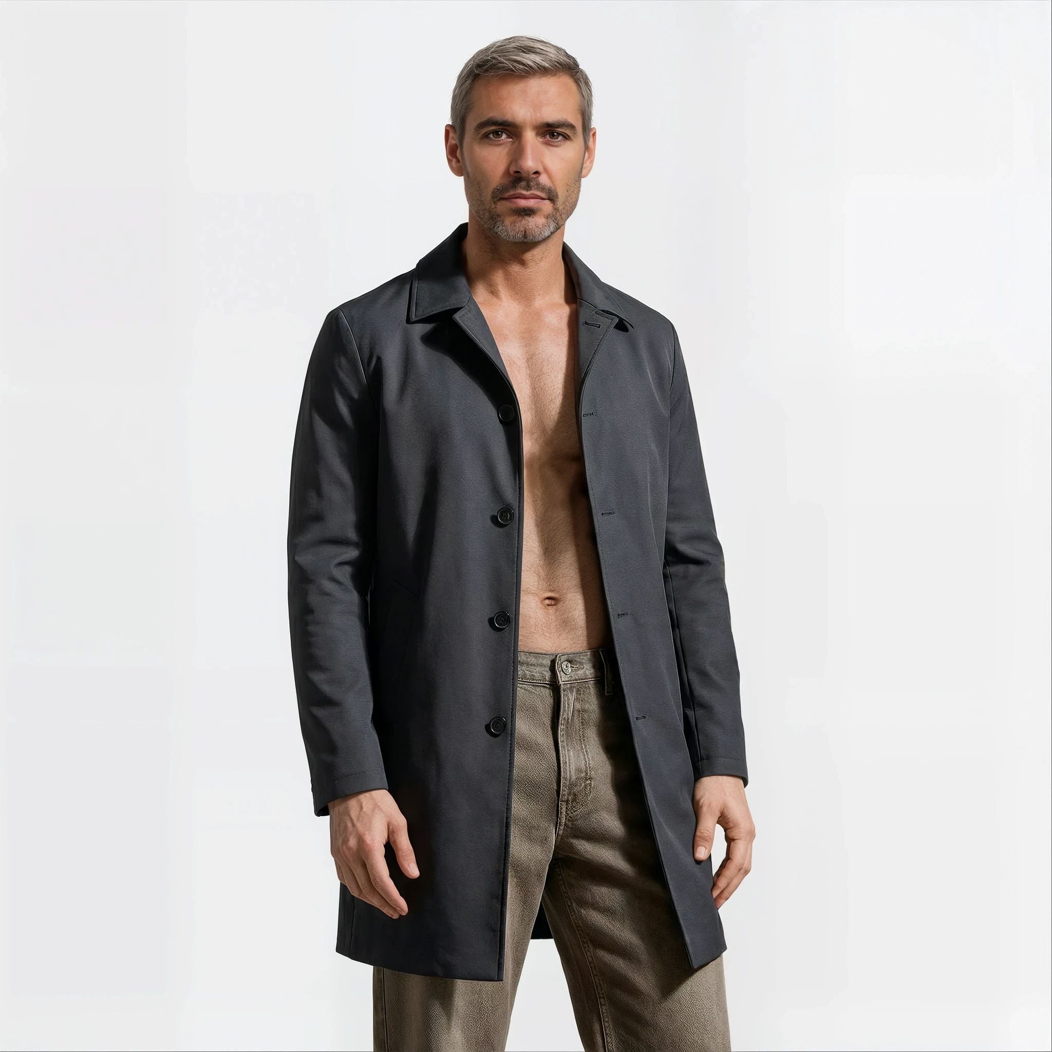 Trench elegante dalla silhouette slim, realizzato in nylon-cotone idrorepellente per protezione affidabile dagli agenti atmosferici. La lunghezza 3/4 offre versatilità stilistica, mentre il collo camicia garantisce un'estetica raffinata e senza tempo. Tasche oblique funzionali e trapunta interna assicurano comfort e praticità. Un capo essenziale che combina protezione tecnica con eleganza sartoriale, perfetto per la mezza stagione e gli impegni quotidiani. Made in Italy.