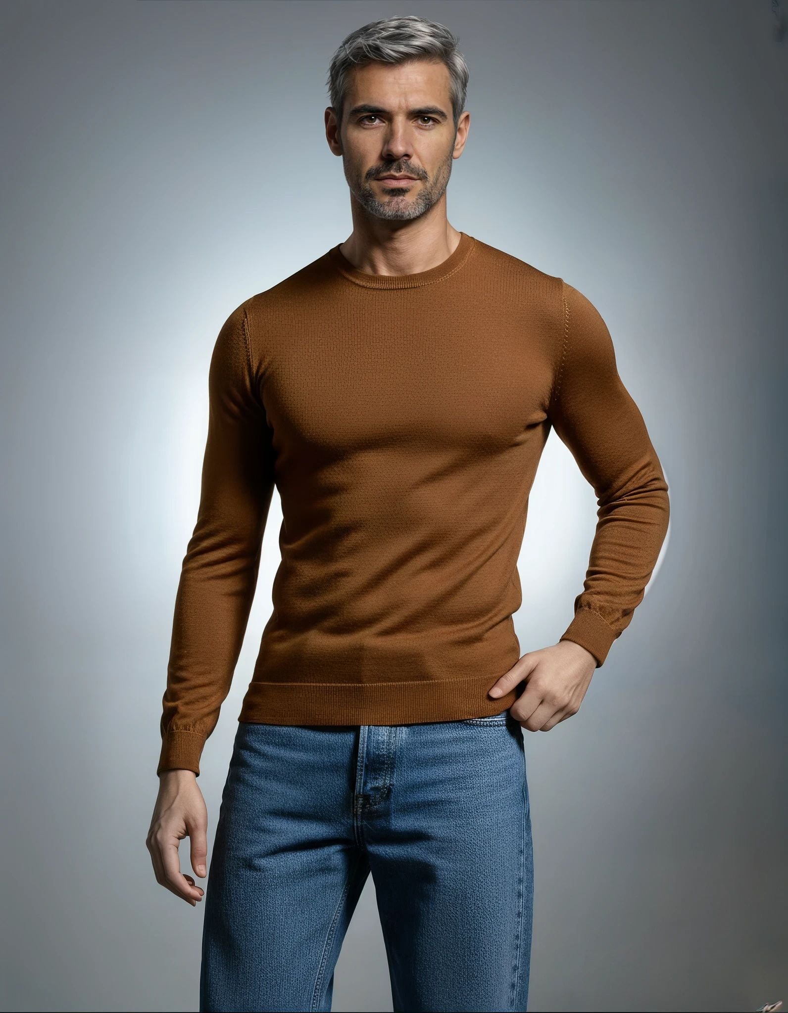 Maglioncino girocollo realizzato in lana viscosa, perfetto per chi ricerca eleganza e comfort. La silhouette slim fit valorizza la figura con un taglio contemporaneo e raffinato. Il collo a giro classico garantisce versatilità negli abbinamenti, mentre la composizione in lana viscosa offre morbidezza al tatto e una naturale traspirazione. Ideale per creare look sofisticati sia in contesti casual che semi-formali. Made in Italy.